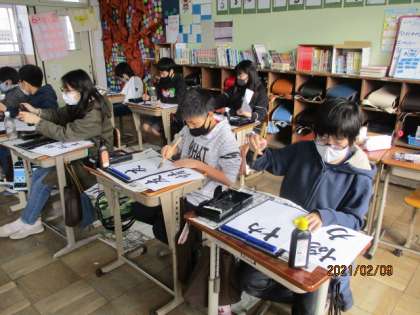 自分が好きな言葉を習字で書きました。いろいろな言葉があっておもしろいです。