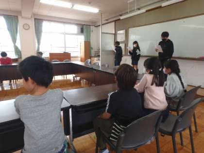 6年生に向けての贈り物の計画をポプラグループの5年生が説明をしてくれました。6年生のため,1〜4年生のためにしっかりと準備をし,堂々と説明をする5年生の姿はとってもかっこよかったです!
