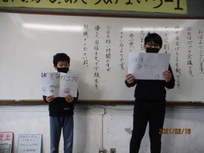 朝の時間に,生活向上委員会から「歯みがき」の大切さについて,お話をしてもらいました。アンケートの結果から,夜と朝の両方に歯みがきをしない人がやや多いようです。虫歯にならないように,しっかり歯みがきをしていきましょう!