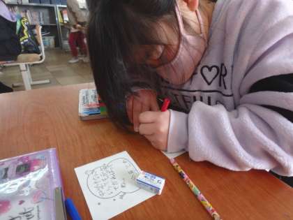 6年生へメッセージカードを書きました。どの子も丁寧な字で思いを込めて書いていました。きっとこれまでの感謝の気持ちは6年生に伝わるはずです!