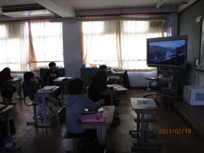 最後に津波の映像を見ました。自然災害の恐ろしさと日頃の備えの大切さを実感したようでした。