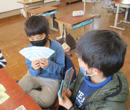 アルファベットのカードを用いて, ”Go fish”というゲームをしました。