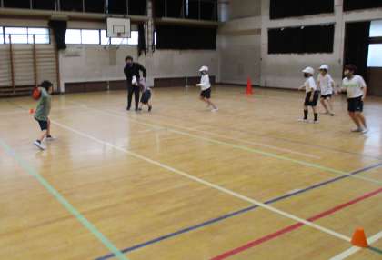 ドッチボールでは, ボールだけでなくドッチビーも2枚入れて活動しました。