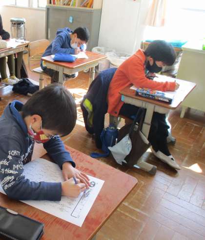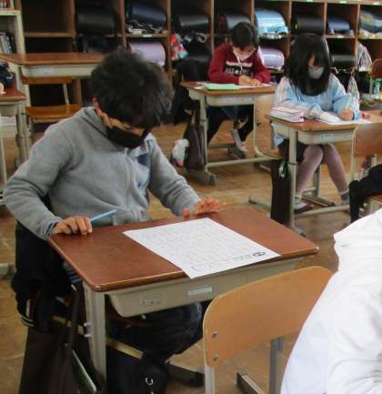 漢字ドリル検定では, 字の形やとめ・はね・はらいなど, 一画一画を丁寧に書いていました。