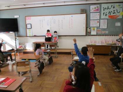 「これはなんでしょう」クイズ大会をしました。ヒントを少しずつ出しながら,上手に問題を出すことができました。