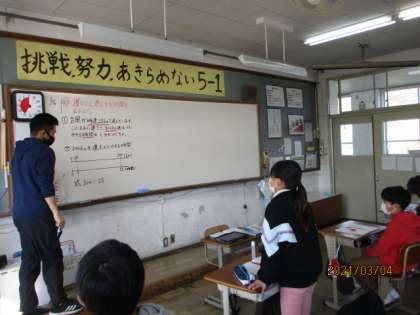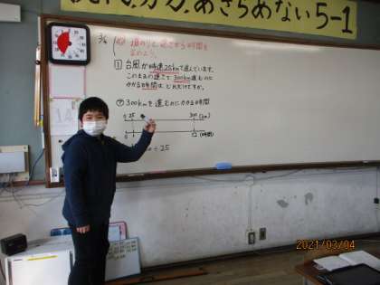 今日は速さと道のりから,時間を求める学習をしました。少し難しいところでしたが,たくさんの人が自分の考えをわかりやすく伝えてくれたおかげで,「わかった!」という人が増えました!