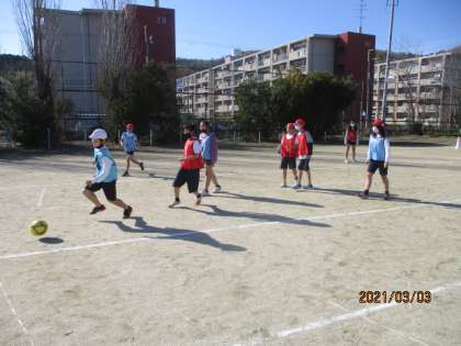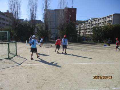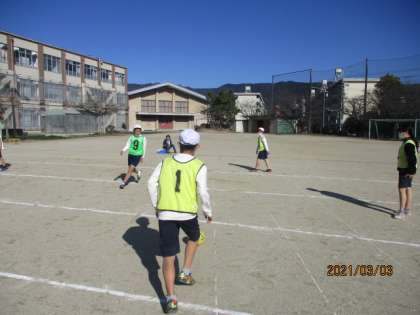 最後の体育はサッカーです。チームで協力して楽しく取り組んでほしいと思います。