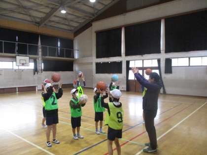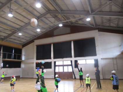 今年から部活動でもバスケ部が出来,子ども達もたくさんの子がバスケットボールに親しんでいるので,とても楽しそうにボールをさわっていました。