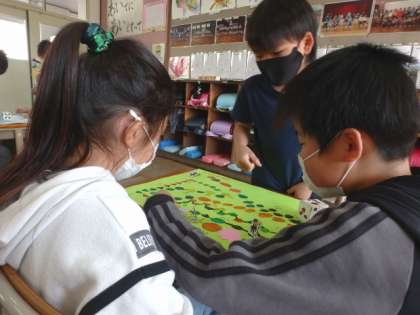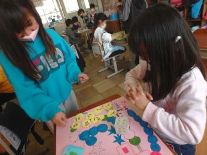 授業の後半では,作ったすごろくで遊んでみました!「何でここで10マス戻るやね〜ん!」「もっとやりたい!」と本当に楽しんでいる姿がとってもかわいかったです!