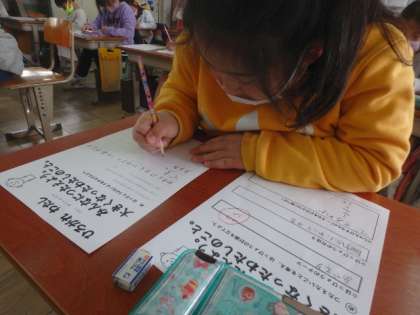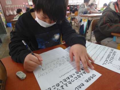 発表会に向けて原稿を考えました。どうすれば友達に自分のことが伝わるのかを考えて文章を書きました。