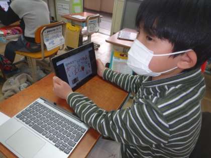 ロイロノートを使っての2回目の学習をしました。ほとんどの子が,写真やイラストを貼り付けてスムーズにカードを作ることができていました。