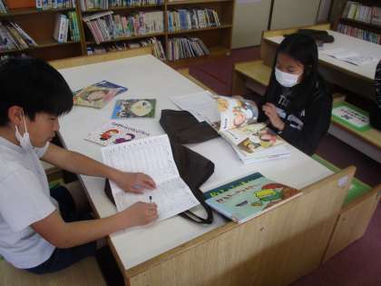 今日も図書館で読書の時間をとりました。