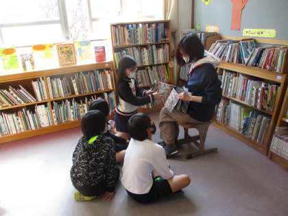 みんなどんどんいろいろな本を手に取ったり,司書教諭の永井先生の読み聞かせを聞いたりして楽しい時間を過ごしました。