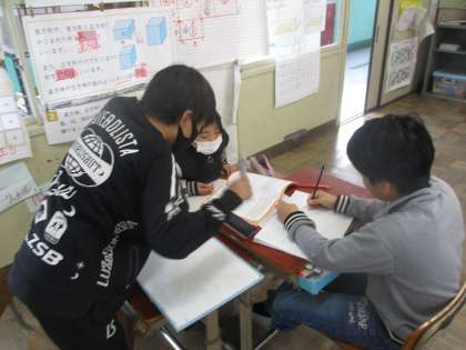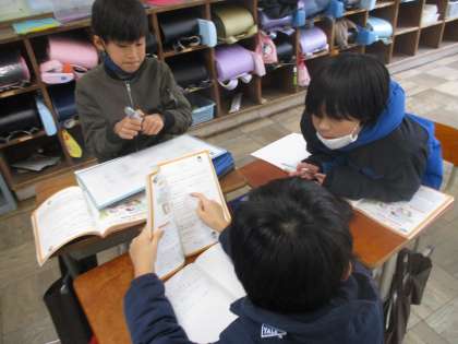 いろいろな資料を見て,必要な情報を見つけて答えを出す問題でしたが,グループで考えを出し合って,何とか答えを出そうと頑張っていました。