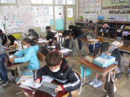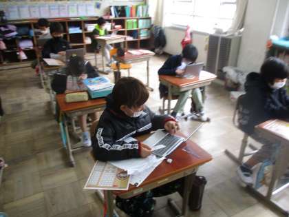 今日は,タブレットを使ってタイピング練習をおこない,出来上がった文章をTeamsに投稿して,みんなで見合いました。