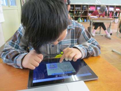 タブレットで,メッセージカードを作りました。自分の写真を撮って載せたり,文字を書いたり,画像を貼りつけたりと,素敵なカードを作ることができました。