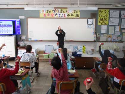 4年生の中で最後に誕生日を迎えた子のお祝いを牛乳でしました。