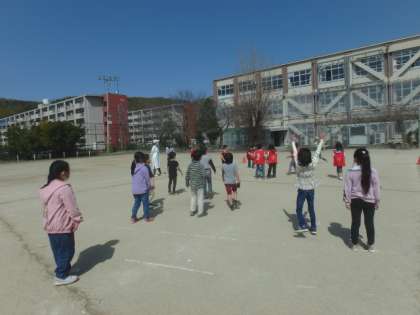 外での遊びは「ドッヂボール」と「ドロケイ」!最後には,芝生の上で寝転びました!いいお天気だったので,とっても気持ちよかったです!