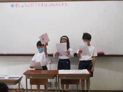 生活で1年間学習してきたことのまとめとして,グルーブごとに発表をしました。学校探検グループ・あさがおグループ(1)・あさがおグループ(2)・いきものとなかよしグループの4つのグループで分かれ,一生懸命発表をすることができました。