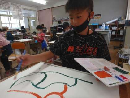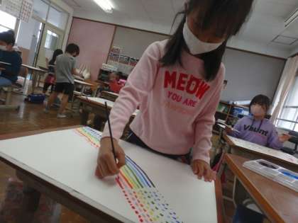 「楽しい〜!」と言いながら,黙々と取り組む子どもたちでした。完成した作品は20日(火)の参観日にご覧いただけるようにしたいと思っています。