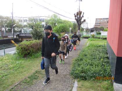 6年生や5年生が各班のリーダーとして先頭でしっかり引っぱりながら集団登校をしてくれています。