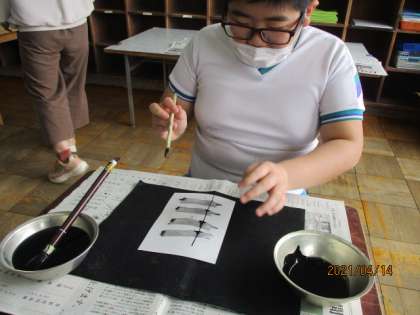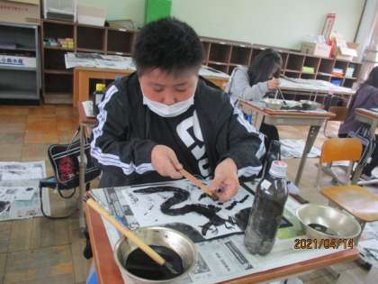 図画工作科の学習では,墨を使って作品を作りました。濃淡や線の太さ,グラデーションやにじみ,さまざまな工夫をすることで,おもしろい作品に仕上がりました。