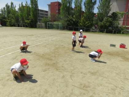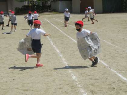 新聞紙を落とさないように走る以外にも、新聞紙になりきって体を動かしました。