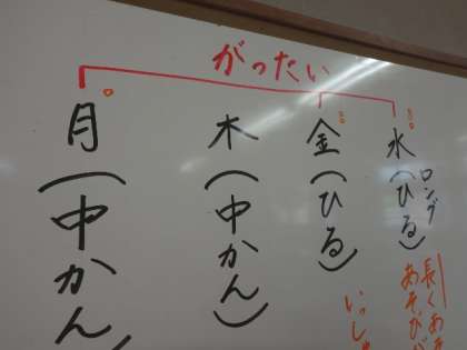 学級会で「みんなで遊ぶ日」を決めました。「金曜日の昼休みがいい!」「水曜日の昼休みやと長い時間遊べるで!」と色々な意見が出ていましたが,「みんなが納得できる案はないかな?」というと,「週によってみんなで遊ぶ日を変える」という意見が出てきました。すごい!みんなで一緒に遊ぶ日が楽しみですね!