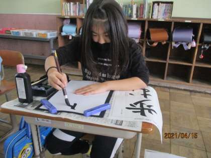 6年生になり,初めての書写の学習をしました。漢字のバランスと平仮名のバランスが難しかったですが,集中して書くことができました。
