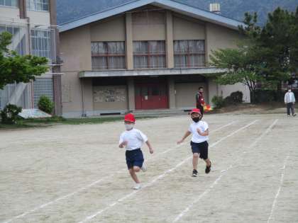 50m走を走って,タイムを測りました。しっかり腕を振りながら,一生懸命走ることができました。