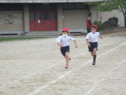 今日の体育は1年生と一緒に50m走を走りました。