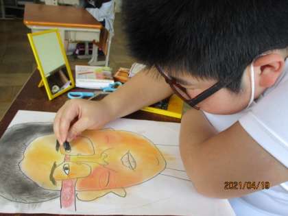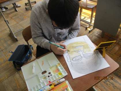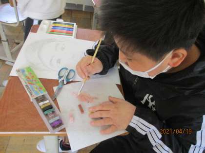 色塗りでは,絵の具を使う人やコンテを使う人,方法はさまざまです。どちらもよさがあり,作品に違いがあっておもしろいです!