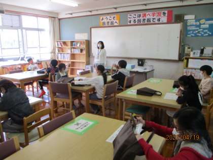 永井先生に図書館の使い方や,ラベルの見方,本の分類の仕方を教えていただきました。