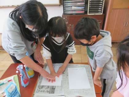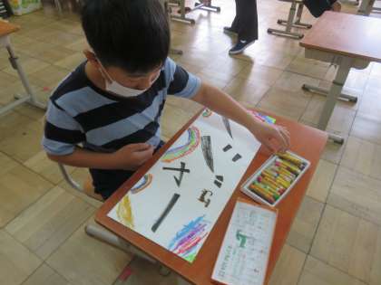 昨日は朝から学級目標の総仕上げをみんなでしました。