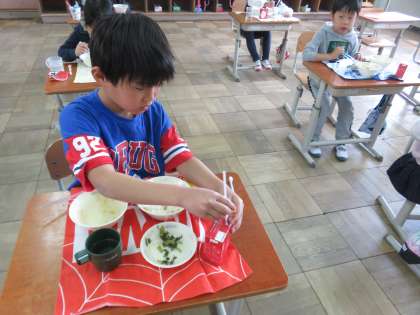先週から給食が始まってます。