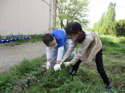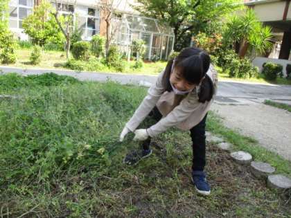 今週は毎朝,学校園の草引きを頑張っています。