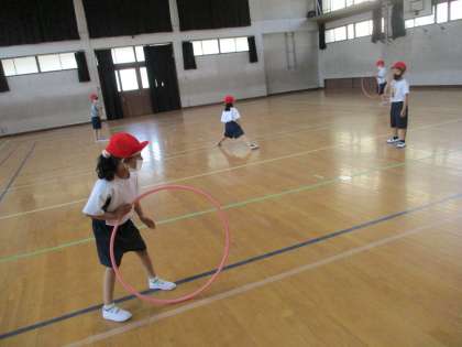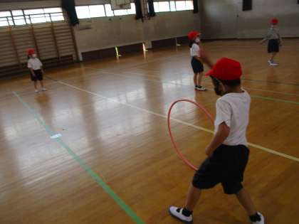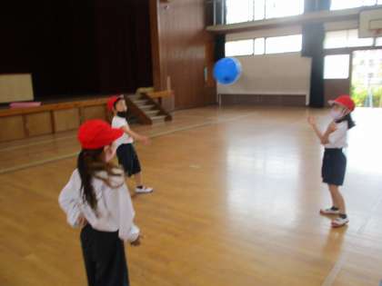 今日の体ほぐしの運動では,フラフープと風船を使って体を動かしました。「汗かいたわ!!」と思い切り体を動かせた様子でした。