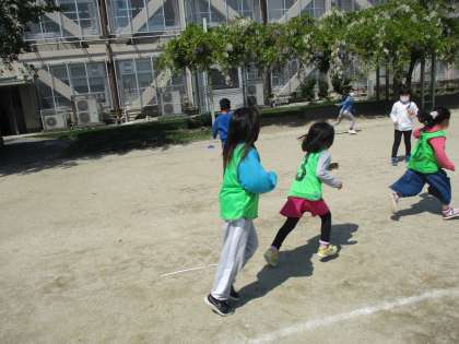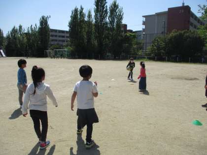 1年生にとっての初めてのロング昼休み!!水曜日は,いつもより長い時間遊ぶことができます♪1年生でドッチボールをした後は,3年生のお兄さんお姉さんも入り,鬼ごっこをしました。