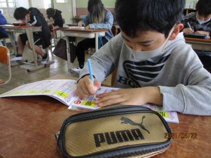 火曜日〜金曜日の朝は,漢字の学習をしています。チャイムがなると,さっと席につき,みんなで部首を確認し,言葉集めをします。高速空書きをして,そこからは自分で書く時間。丁寧に書くので,お直しがありません。全員が集中するこの時間がとても心地がいいです。