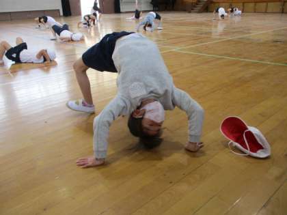 柔軟体操では、友達と協力して、体を曲げたり伸ばしたりできていました。