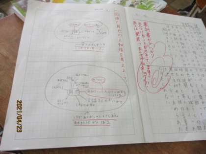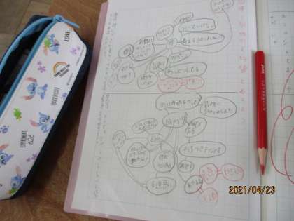 「帰り道」の律と周也の人物像を教科書の言葉に着目して考えました。「マイペース」「おしゃべり」など直接的に表現していることだけでなく,その人物がとった行動から「友達思いな性格」「自分の意見はしっかりともっている人」などより深く考えることができました。