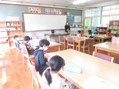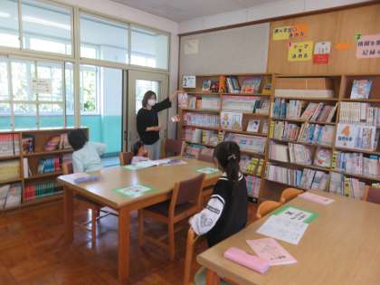図書館の本の背表紙にある本の住所を教えてもらい、どこにどんな本があるかをしっかりと学びました。