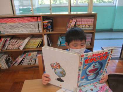 初めて,学校図書館へ行きました。図書館の使い方を図書司書の永井先生から教わったあと,実際に自分の好きな本を借り,図書館で読みました。