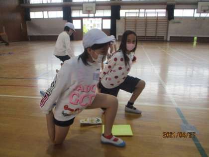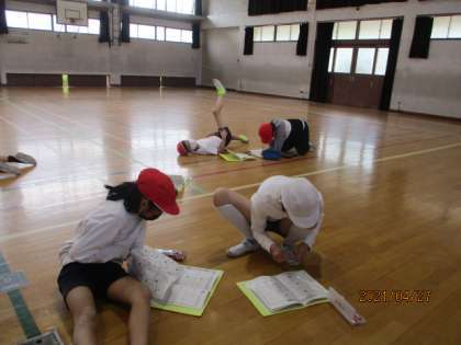 自分で作ったパワーアップ体操を今日は自分でおこない,最後に体力測定をおこないました。