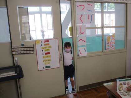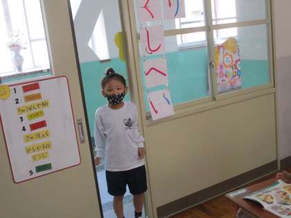 国語で「なんていおうかな」の学習をしました。その中で,「職員室に用事があるときは,なんて言おう?」ということがでてきたので,一人ずつ「しつれいします。1年1組の〇〇です。」という練習をしました。