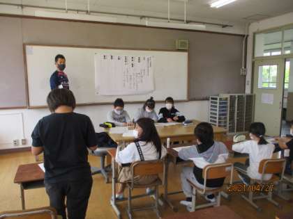 昨日は委員会活動。そして,今日は第1回代表委員会でした。各クラスの代表委員と各委員長が集まり,伝達します。6年生の教室では,前もって,どんなことを伝えないといけないのかをそれぞれがしっかり考えて,代表委員会にのぞんでいました。その姿は責任感のあるとても立派な姿でした。