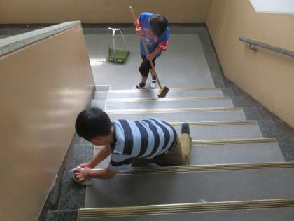 2年生になり、掃除の場所も種類も増えていますが、今週のMVPは階段掃除です。
