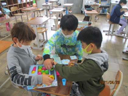 教室では雨の日用具を使って遊んだり,図書館で借りた本を静かに読んだりしながら過ごしていました。
