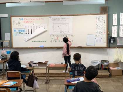 気温の変わり方が一目でわかるグラフとして、折れ線グラフがあることを知り、話し合いながら読み取りかたを考えました。