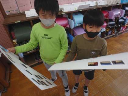 出来上がった地図を友達と見比べてみると,同じ建物でも,それぞれの地図でバラバラの方向に描いていることに気が付きました。また,話し合いの中でもっと簡単にできる方法を話し合いました。